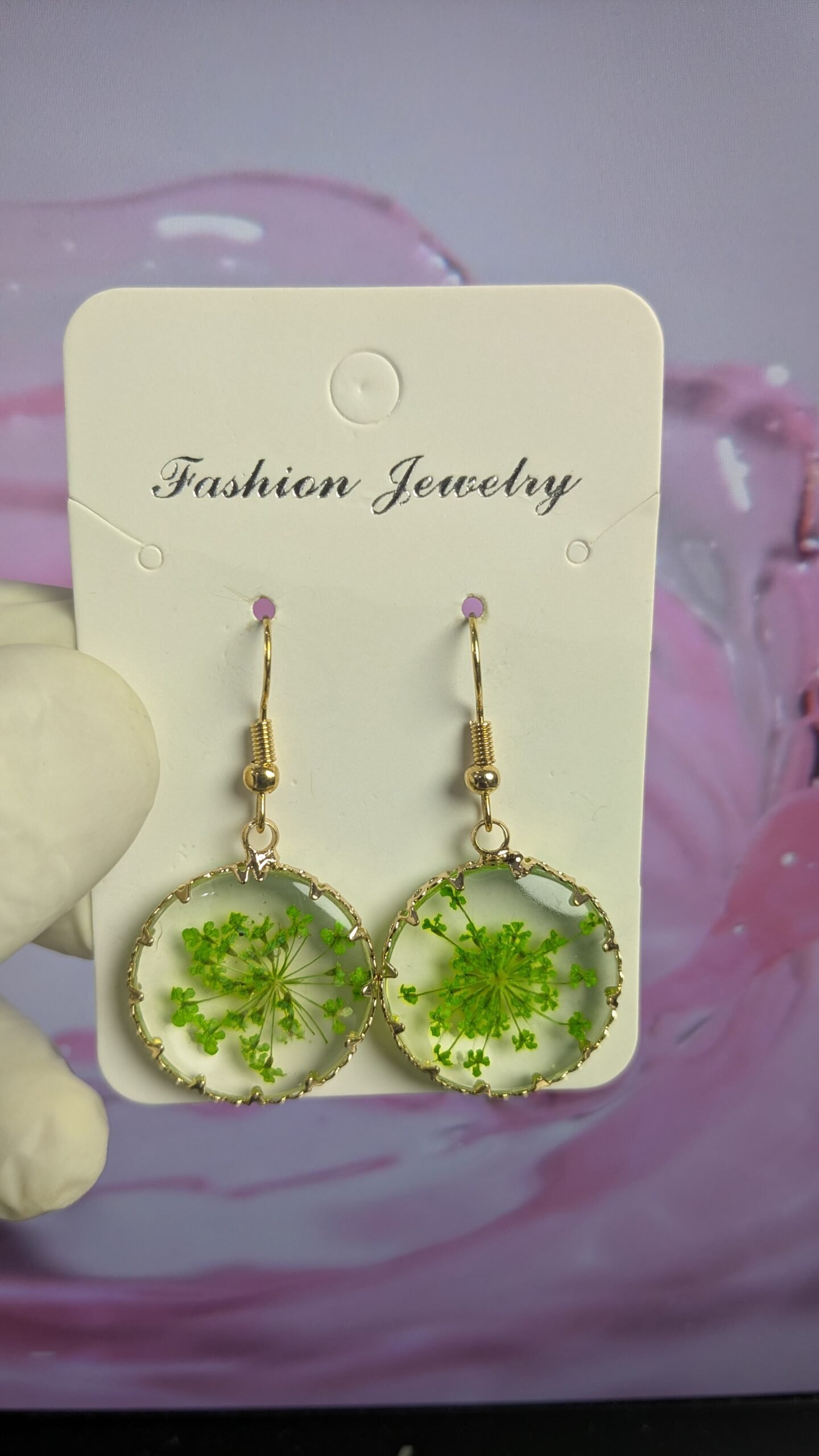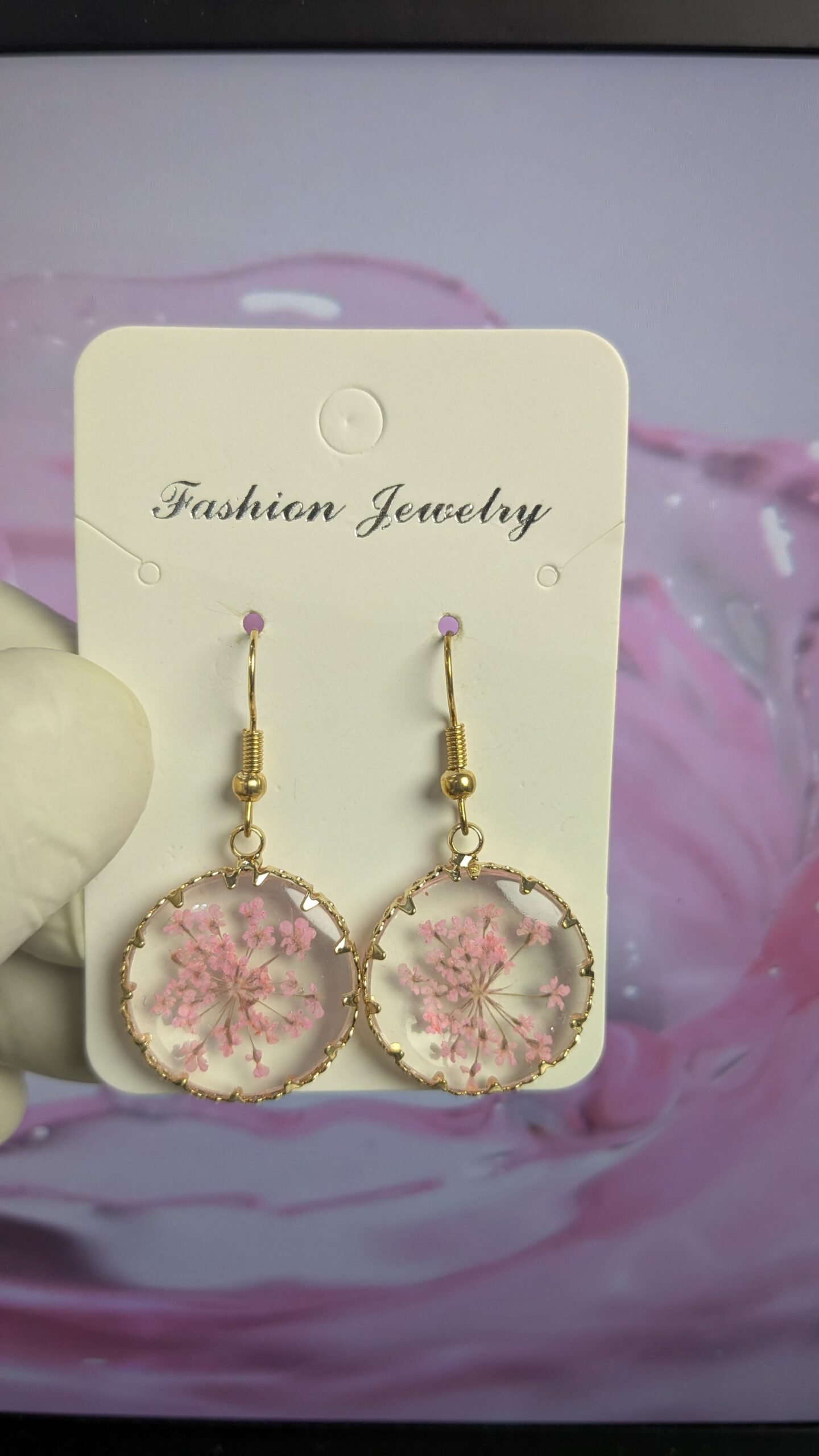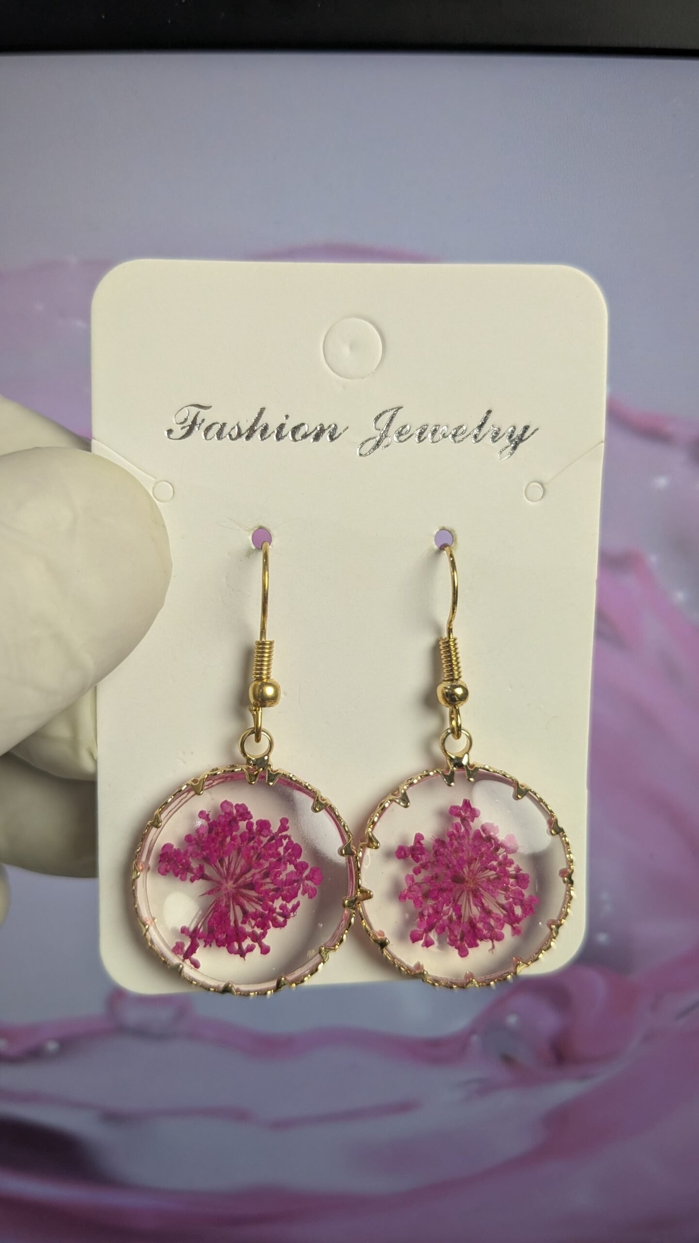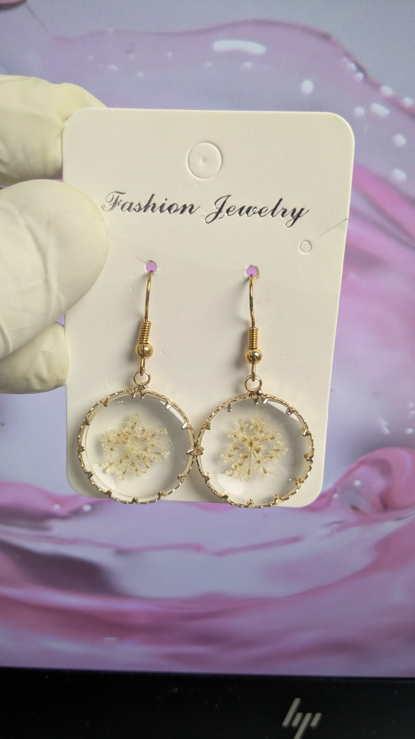 Golden Circle Resin Earrings: Real Pressed Flowers, Hypoallergenic