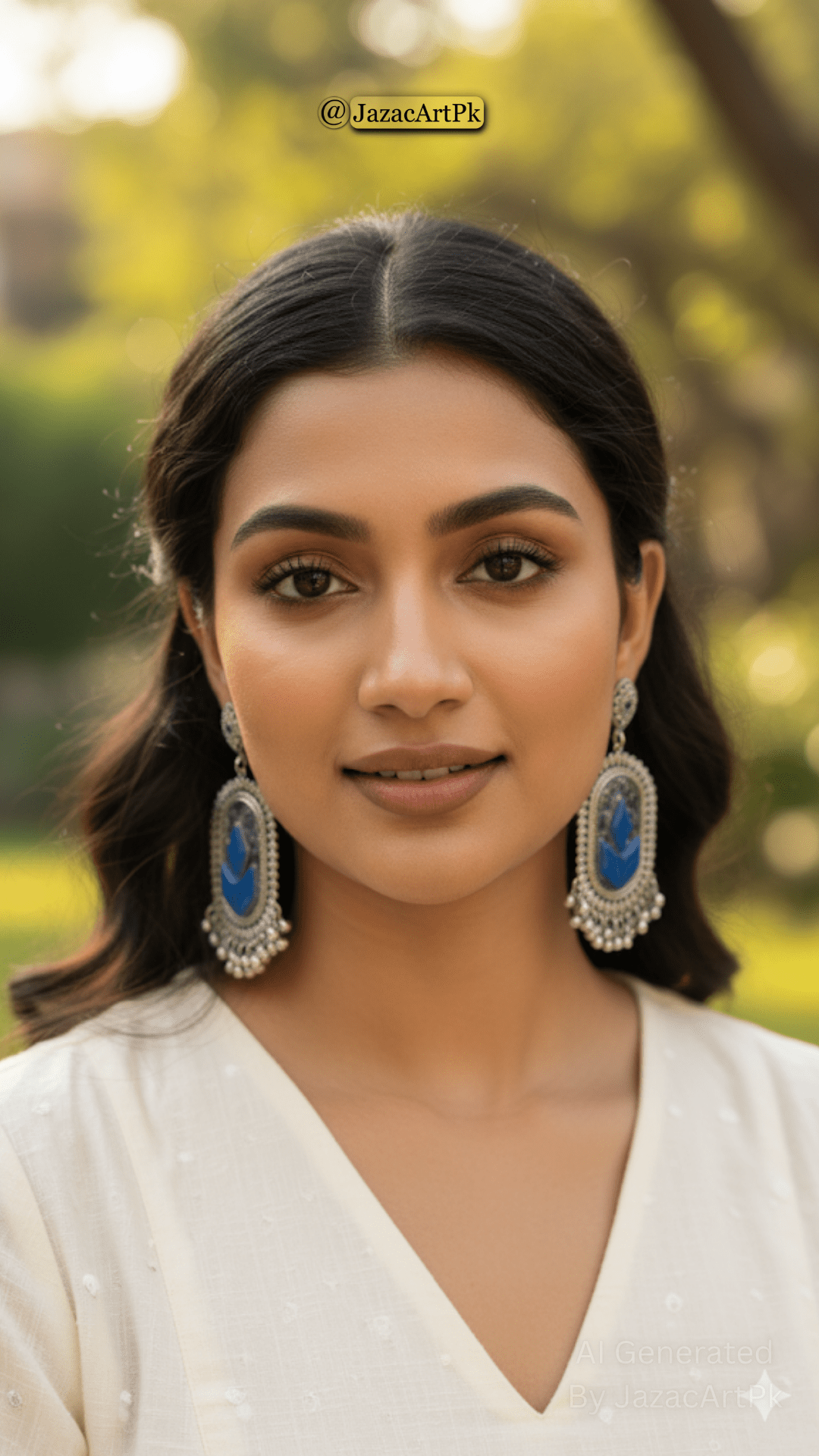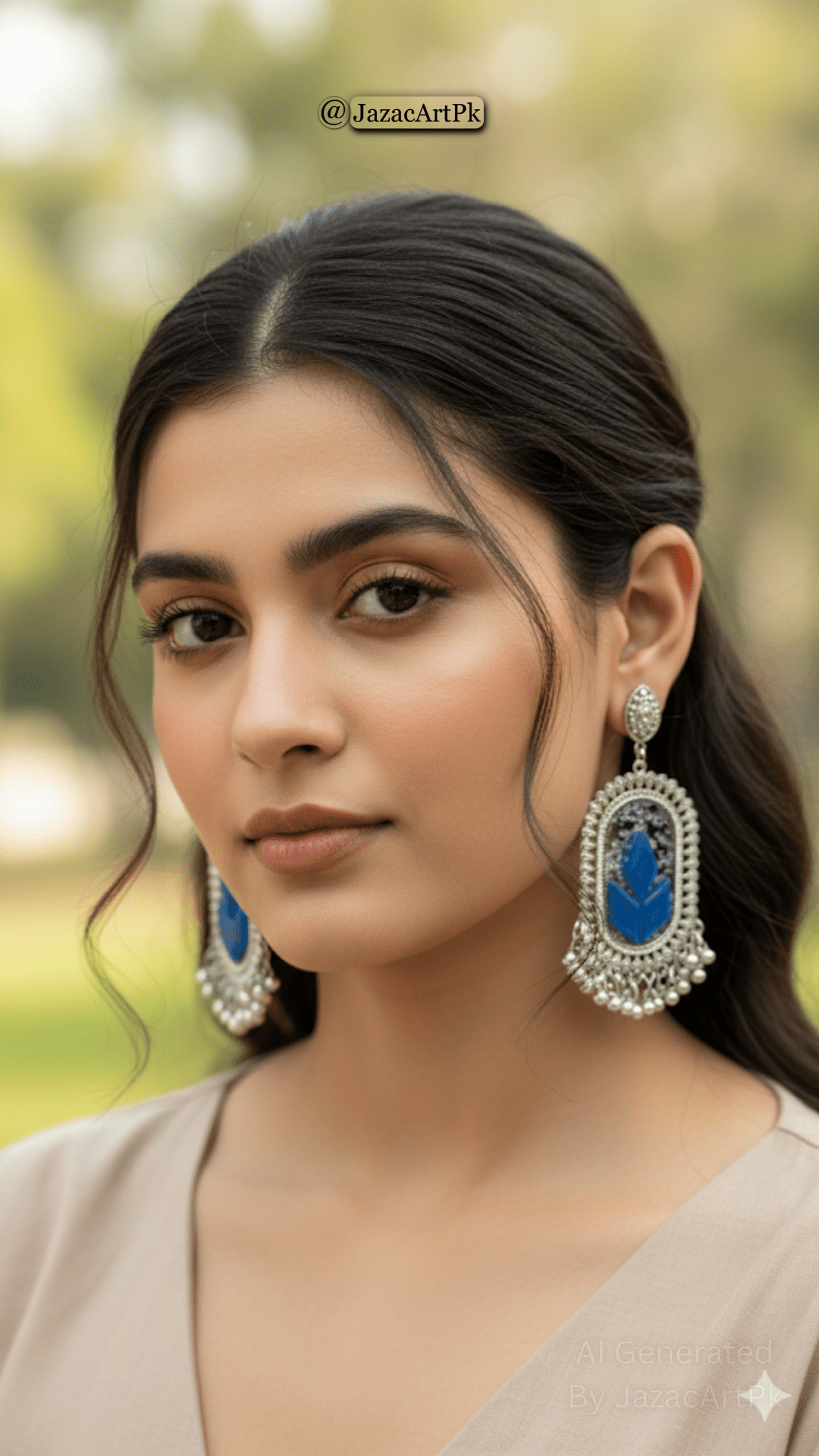The earrings are set in a stainless-steel frame, bordered with delicate silver beads that add movement and sparkle. Despite their detailed craftsmanship, they remain lightweight, hypoallergenic, and comfortable for extended wear — perfect for festive occasions, evening parties, or thoughtful gifts for someone special.